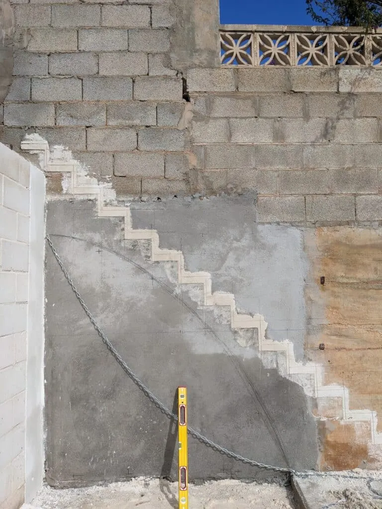- Revoco impermeable: Finalmente, la escalera se completó con un revoco impermeable, una capa protectora que evita la penetración de la humedad y aporta mayor durabilidad. Esta fase es clave para asegurar que la escalera resista el paso del tiempo y las condiciones ambientales, manteniendo su solidez y estética.