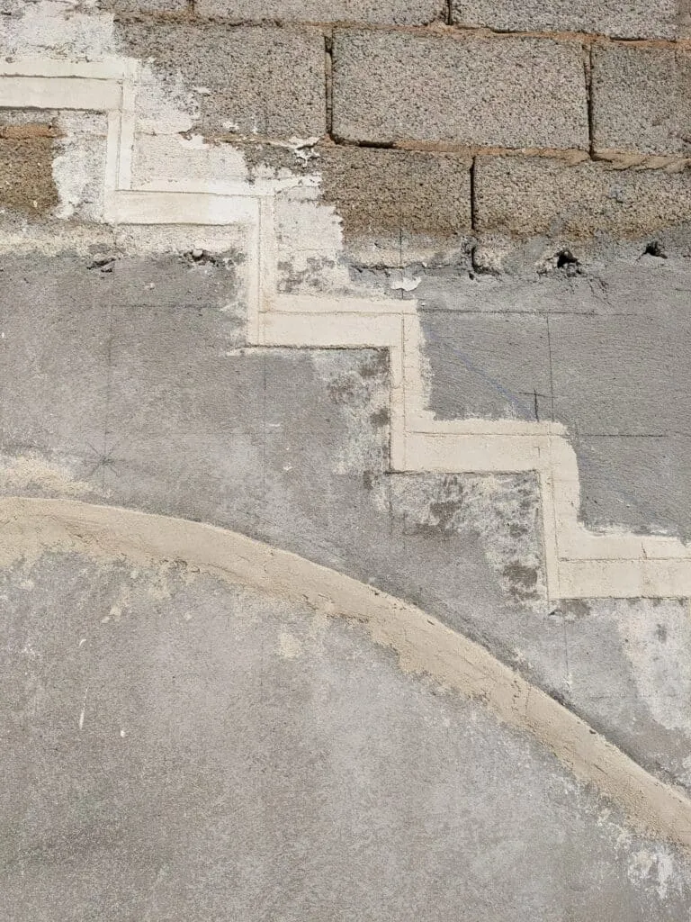 - Marcado de trabadillo y peldañeado: Con la forma general del arco definida, procedimos a marcar los peldaños y el trabadillo en cada escalón. Este marcado es fundamental para mantener la precisión en cada paso de la construcción, facilitando la colocación uniforme de los ladrillos y asegurando que la escalera mantenga la estética y la funcionalidad requeridas.
